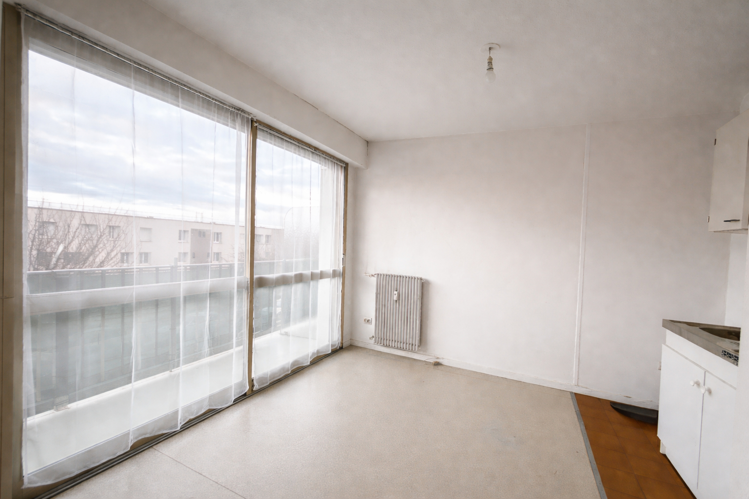 Cet appartement situé au 2ème étage d'un petit immeuble dispose d'une cuisine fermée, d'un séjour avec un coin nuit et d'une salle d'eau.