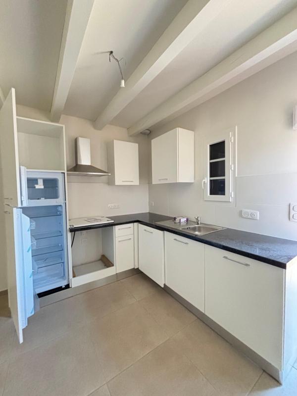 LA COURONNE - Appartement T2 situé au rez-de-chaussée comprenant une pièce de vie avec coin cuisine équipée et aménagée (plaque de cuisson, hotte, réfrigérateur top), une chambre avec placard, une salle d'eau, WC.