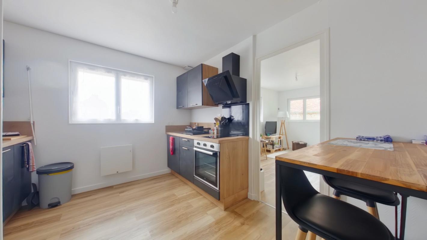 SQUARE HABITAT LOUDUN vous propose ce bel appartement rénové au premier étage comprenant une entrée, une pièce de vie lumineuse avec cuisine ouverte et équipée (hotte, plaque, four), une chambre avec espace salle de bain et un wc séparé.