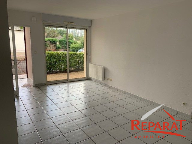EN RESIDENCE, dans le centre ville d'OBJAT, Appartement de type F2 meublé avec parking, comprenant une entrée avec placard, une cuisine aménagée ouverte sur séjour, une chambre avec placard, salle d'eau, un WC.