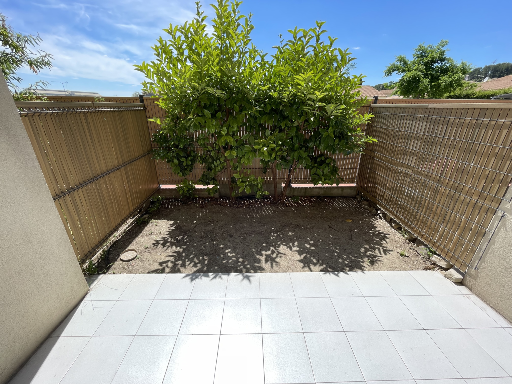 rangement donnant sur une petite cour privée.