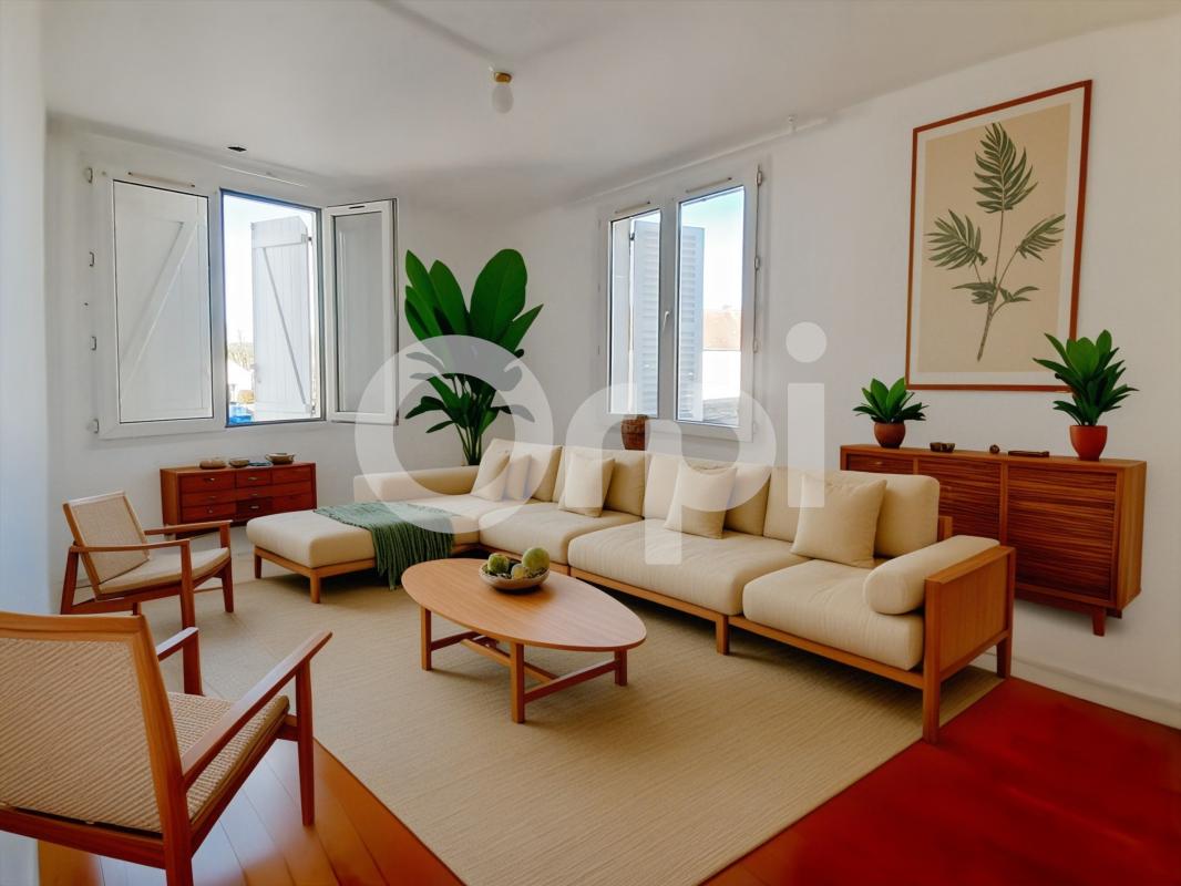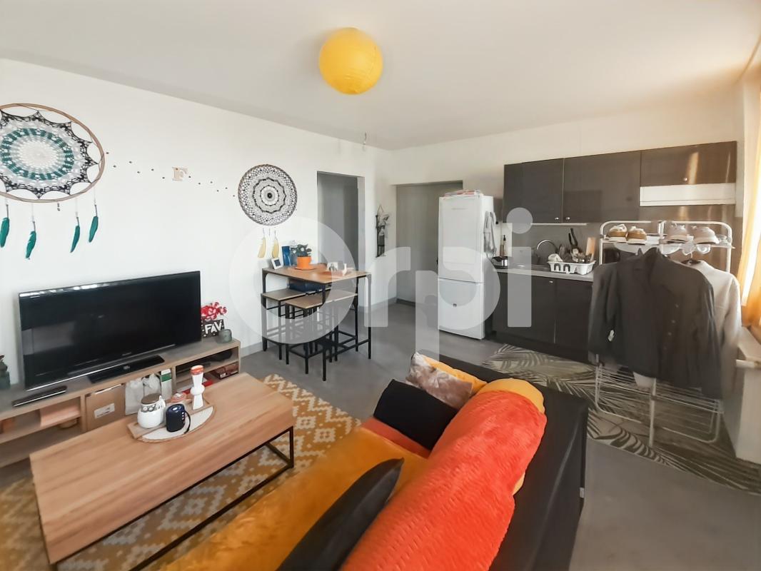 En centre ville , un F3 de 59.64 m² au 1er étage offrant entrée sur vaste séjour , cuisine aménagée et équipée d'une plaque , d'un four et d'une hotte , dégagement avec placards, deux chambres, une salle d'eau , wc séparé,.Chauffage individ...