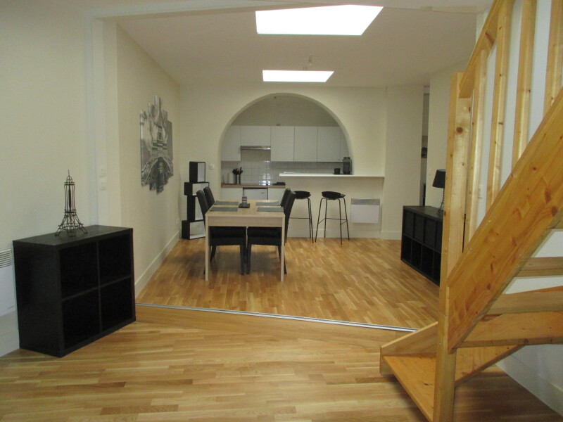 ORLEANS CENTRE, Beaucoup de charme pour ce F2 meublé comprenant une pièce à vivre de 36 m2 avec cuisine aménagée et équipée (réfrigerateur, plaque de cuisson, microonde, lave linge, sèche linge et hotte), 1 mezzanine de 6 m2, 1 chambre.