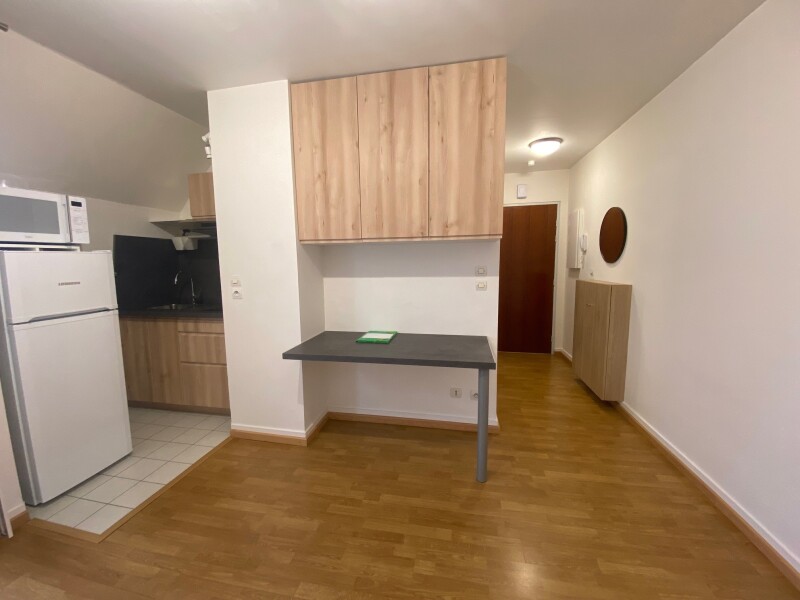 ORLEANS - Quartier théâtre. Résidence au pied du lycée St Paul, F2 avec cuisine aménagée et équipée (plaque de cuisson, micro-ondes, hotte, réfrigérateur/congélateur) ouverte sur le séjour, 1 chambre avec placard, salle d'eau avec wc. 1 terrasse de 27.29 ...