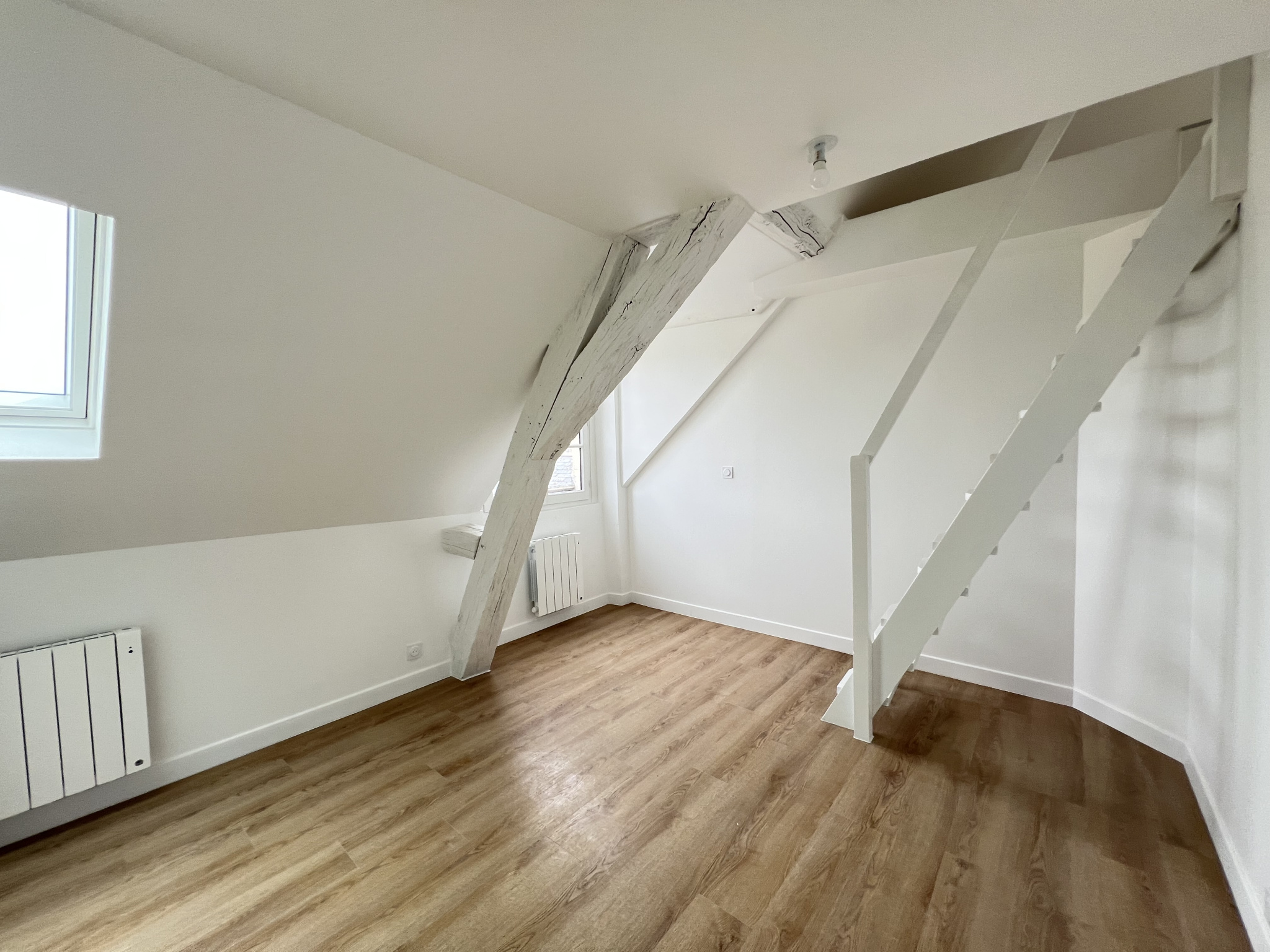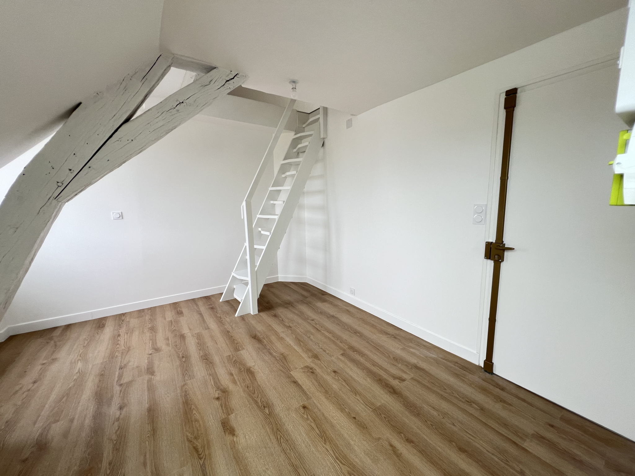 Orléans, Quartier Historique, T2 donnant sur cour, comprenant une cuisine équipée d'une plaque électrique, réfrigérateur ouverte sur séjour, chambre en mezzanine, courette. Chauffage individuel électrique.