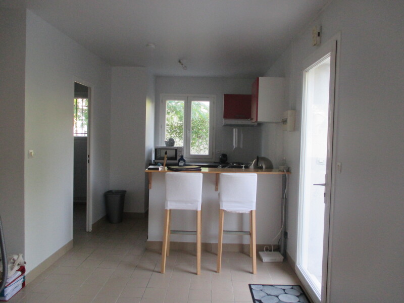 Appartement meublé de type 1 bis , proposant une pièce principale, une cuisine séparée et une salle d'eau.