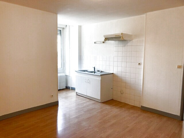 Appartement au centre ville, au 1 er étage, comprenant un séjour avec cuisine aménagée (plaque et four), une chambre et une salle d'eau avec wc.
