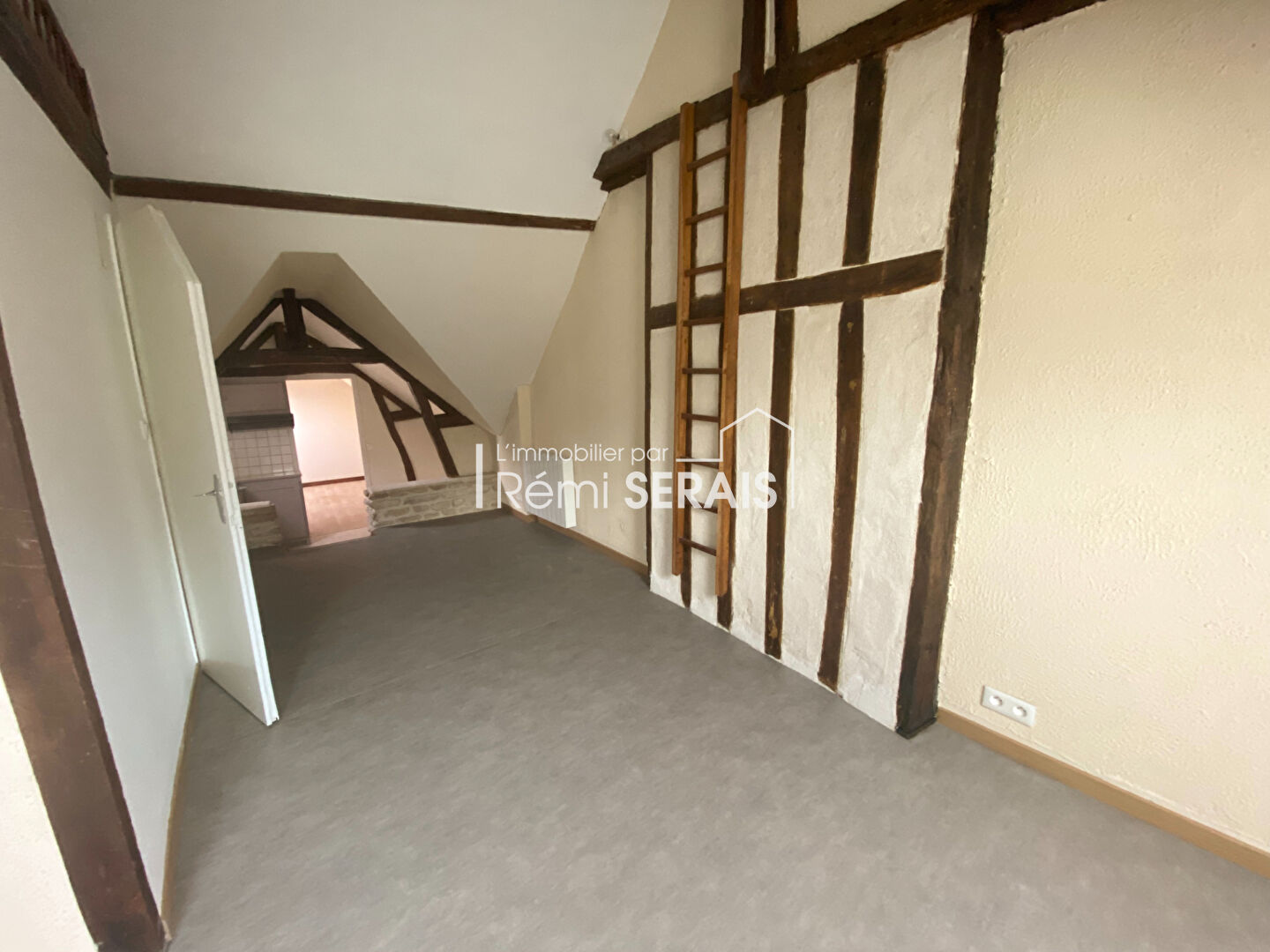 Grand appartement de type F1-F2 au 3ème étage, comprenant une entrée desservant cuisine/salle - grande chambre - salle d'eau - WC - petit grenier.