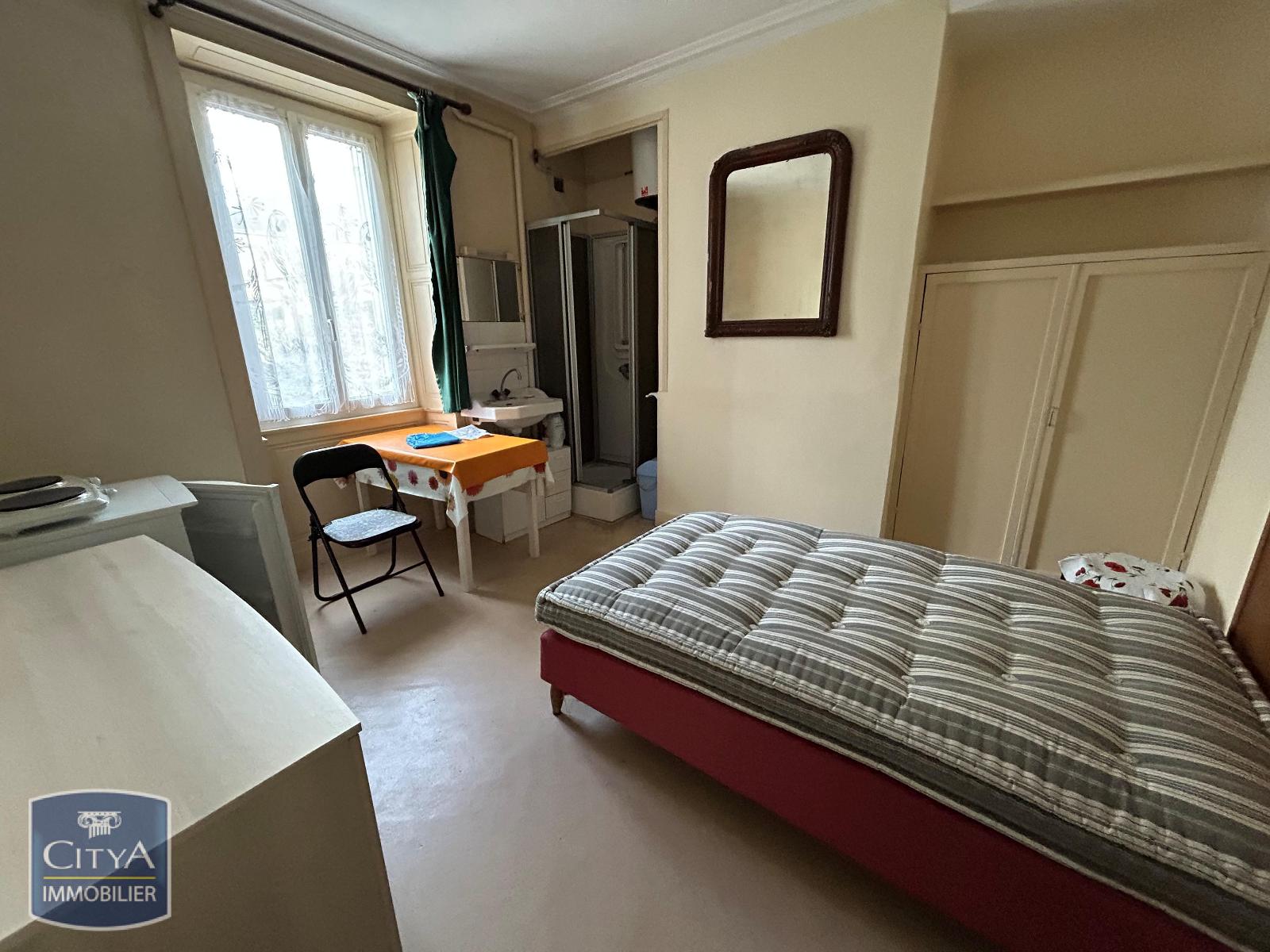 Au 2ème étage, proche centre ville, studio meublé avec salle d'eau et coin cuisine équipée. Chauffage électrique.