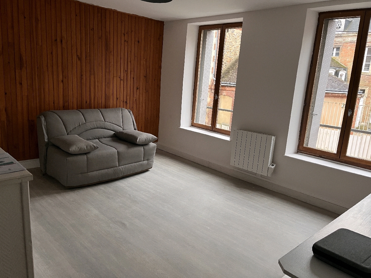 Studio rénové dans le centre de Bellême au pied des commerces comprenant une pièce de vie et une salle d'eau avec wc.