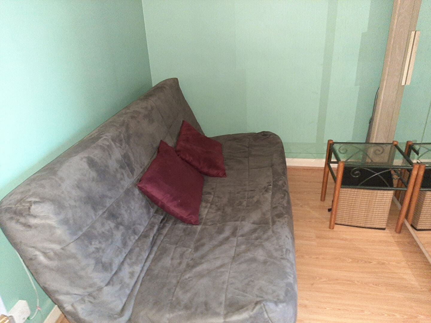Le logement comprend un coin cuisine fonctionnel et une salle d'eau avec WC.