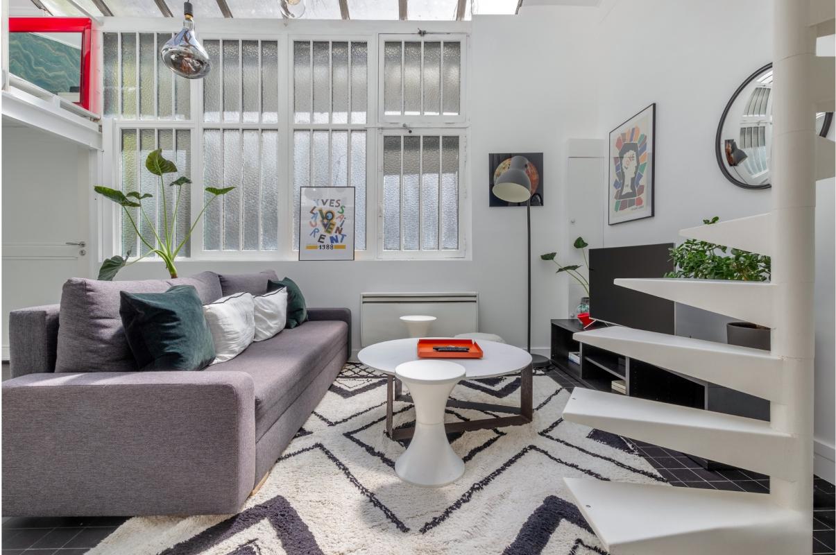 Ce bel appartement meublé, situé au 3e étage sans ascenseur, séduit par son authenticité et sa vue imprenable sur le mythique Moulin de la Galette.