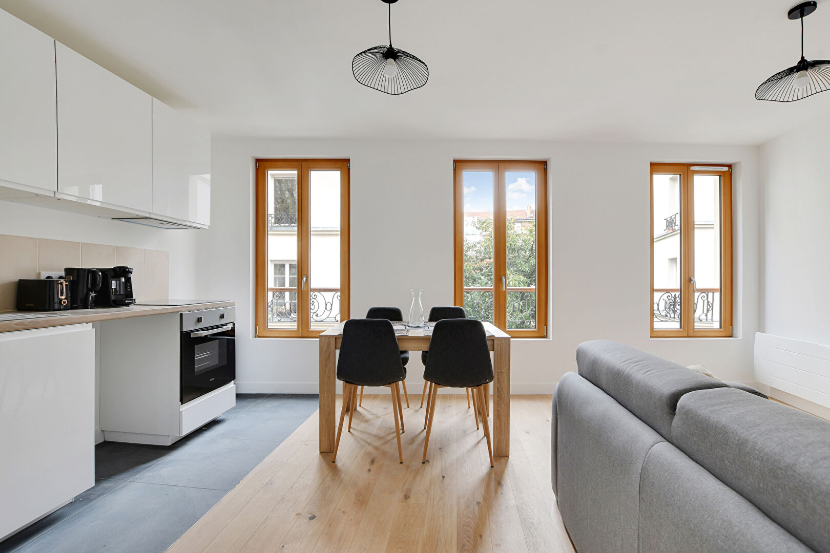 Rue Archereau entre le 104 et le cour Florent.Un appartement meublé typiquement Parisien au 6ème étage sans ascenseur, se composant : d' une entrée , un séjour, une chambre , une cuisine séparé, une salle de bains, un wc.Parquet au sol, double vitrage, ...
