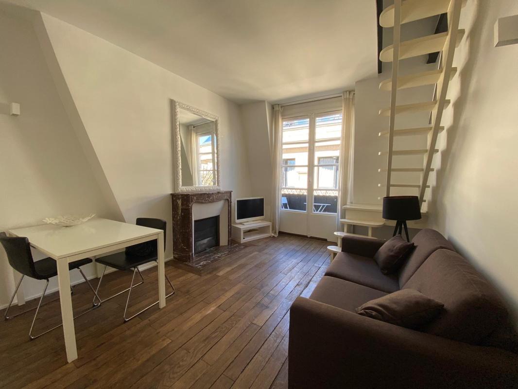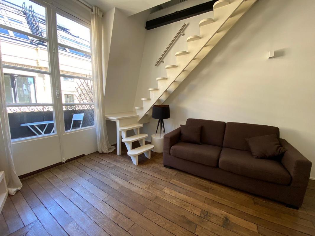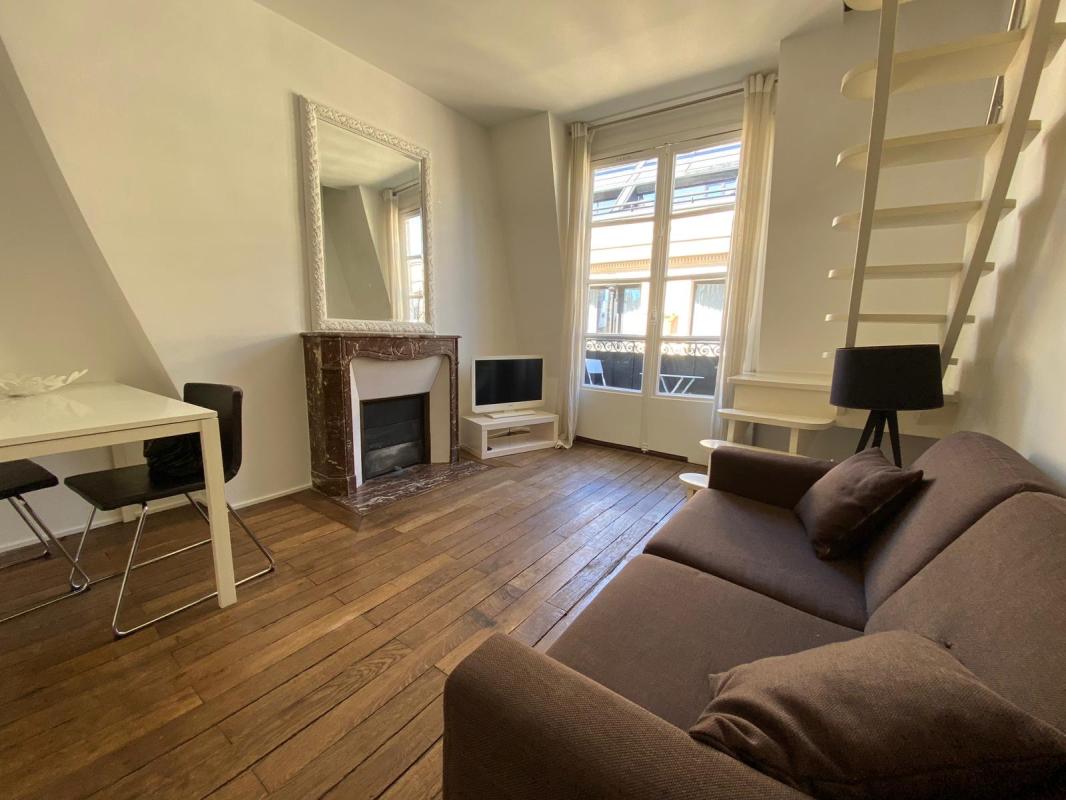 Rue Gomboust - Location meublée - Au 2ème étage d'une charmante copropriété à proximité immédiate du Marché Saint-Honoré, Paris Seine vous propose de visiter ce grand studio meublé de 29.92 m² avec mezzanine, comprenant : une pièce de vie, une cuisine amé...