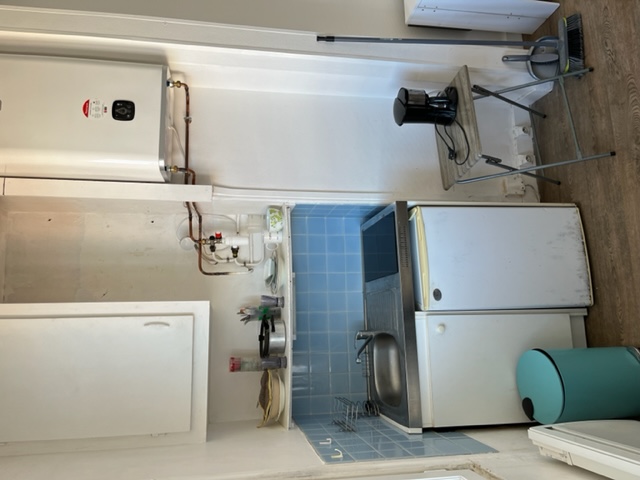Le logement comprend un coin cuisine fonctionnel et une salle d'eau avec WC.