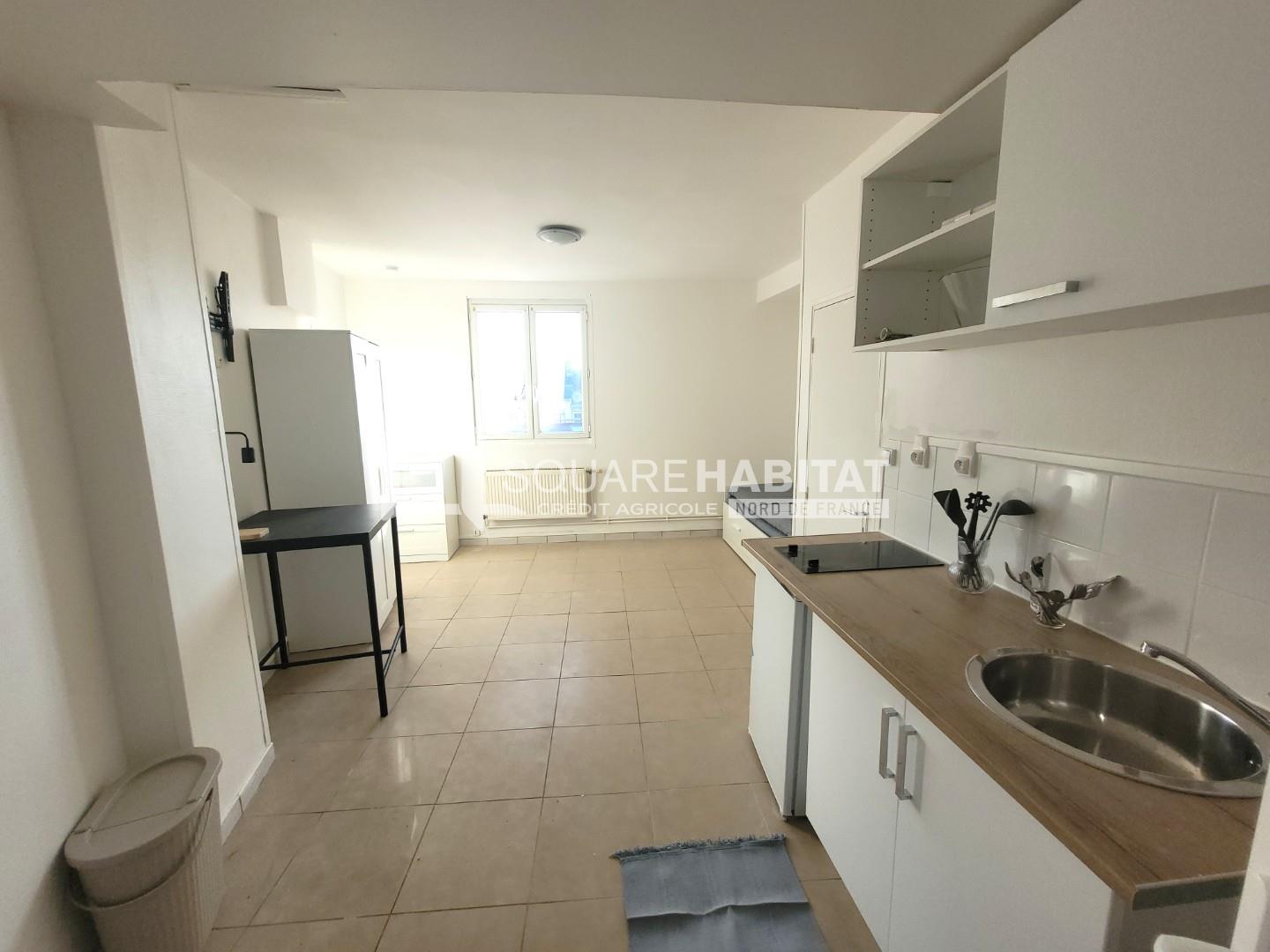 A louer à Béthune : L'Agence CITYA Grand Place vous propose à la location un studio meublé proche du centre ville. L'appartement situé au 1er étage d'un immeuble de 2 étages comprend une pièce de vie ouverte sur un coin cuisine, une salle de bai...