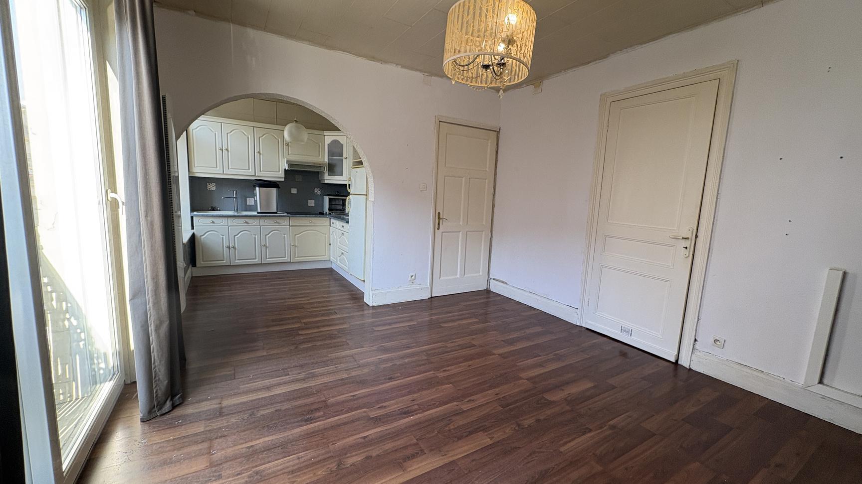 Appartement au 1er étage comprenant un séjour, une cuisine non équipée, une salle d'eau, wc et une chambre, chauffage au gaz de ville.