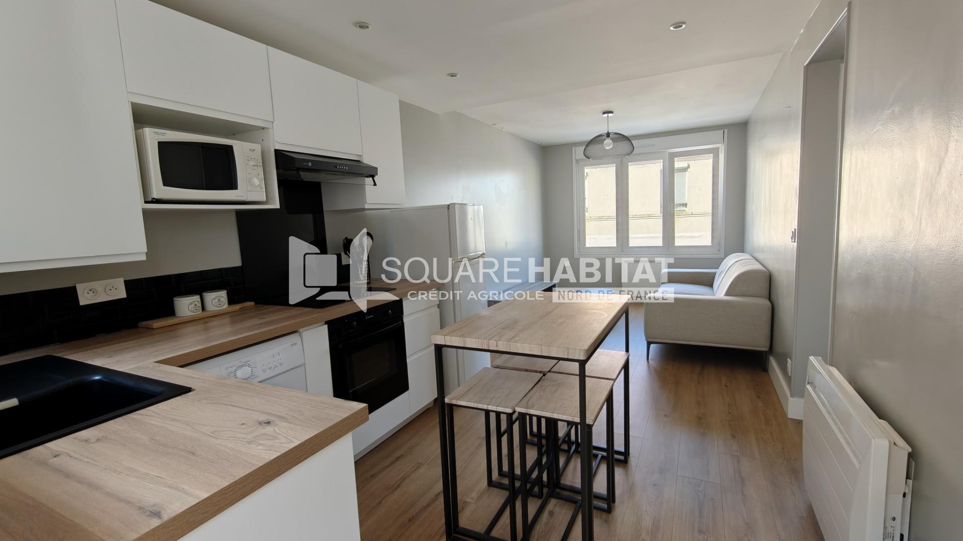 Appartement proche centre ville de Boulogne sur mer, comprenant 1 belle pièce principale avec coin cuisine aménagée et équipée, 1 salle d'eau, 2 chambres dont une avec dressing.