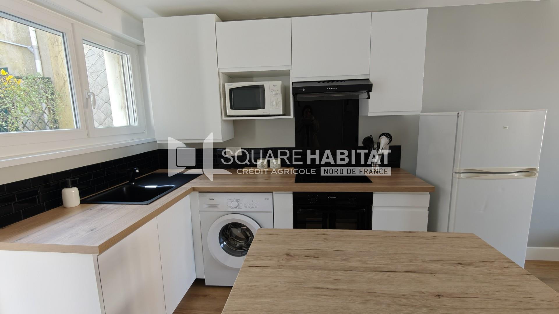 Bel appartement meublé deux pièces refait récemment au 1er étage d'un immeuble situé à deux pas de la plage de Merlimont. Ce bien se compose d'un séjour lumineux avec cuisine ouverte moderne et toute équipée (plaque à induction, four, hotte, lave-lin...