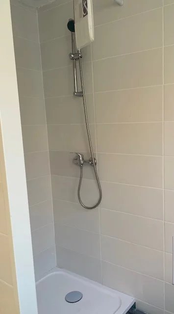 1 pièce de vie principale ouverte sur une kitchenette (plaques, frigo), un coin couchage/nuit et une salle d'eau avec douche neuve et wc. Chauffage électrique.