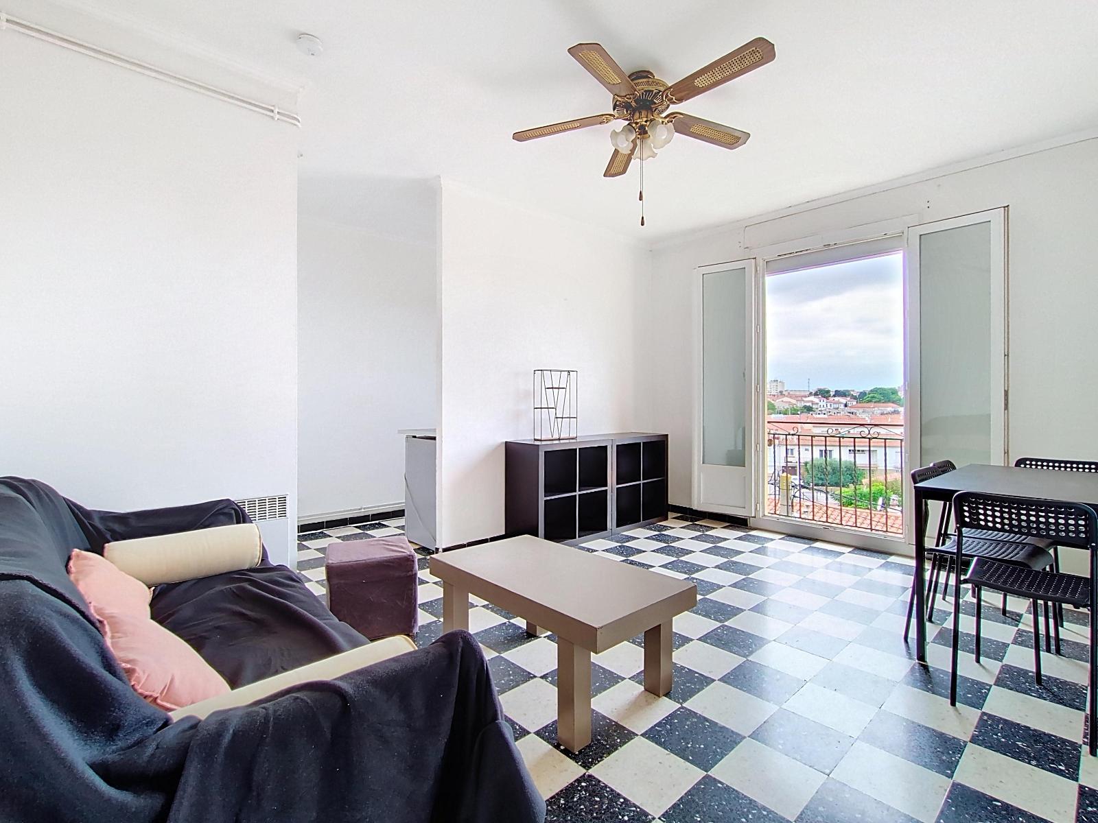 PERPIGNAN MOYEN VERNET - Au 1er et dernier étage d'une maison de ville, à quelques minutes à pied du centre ville, grand appartement F2 composé d'une entrée directe dans grand séjour avec coin cuisine aménagée et équipée, chambre, salle de bains.