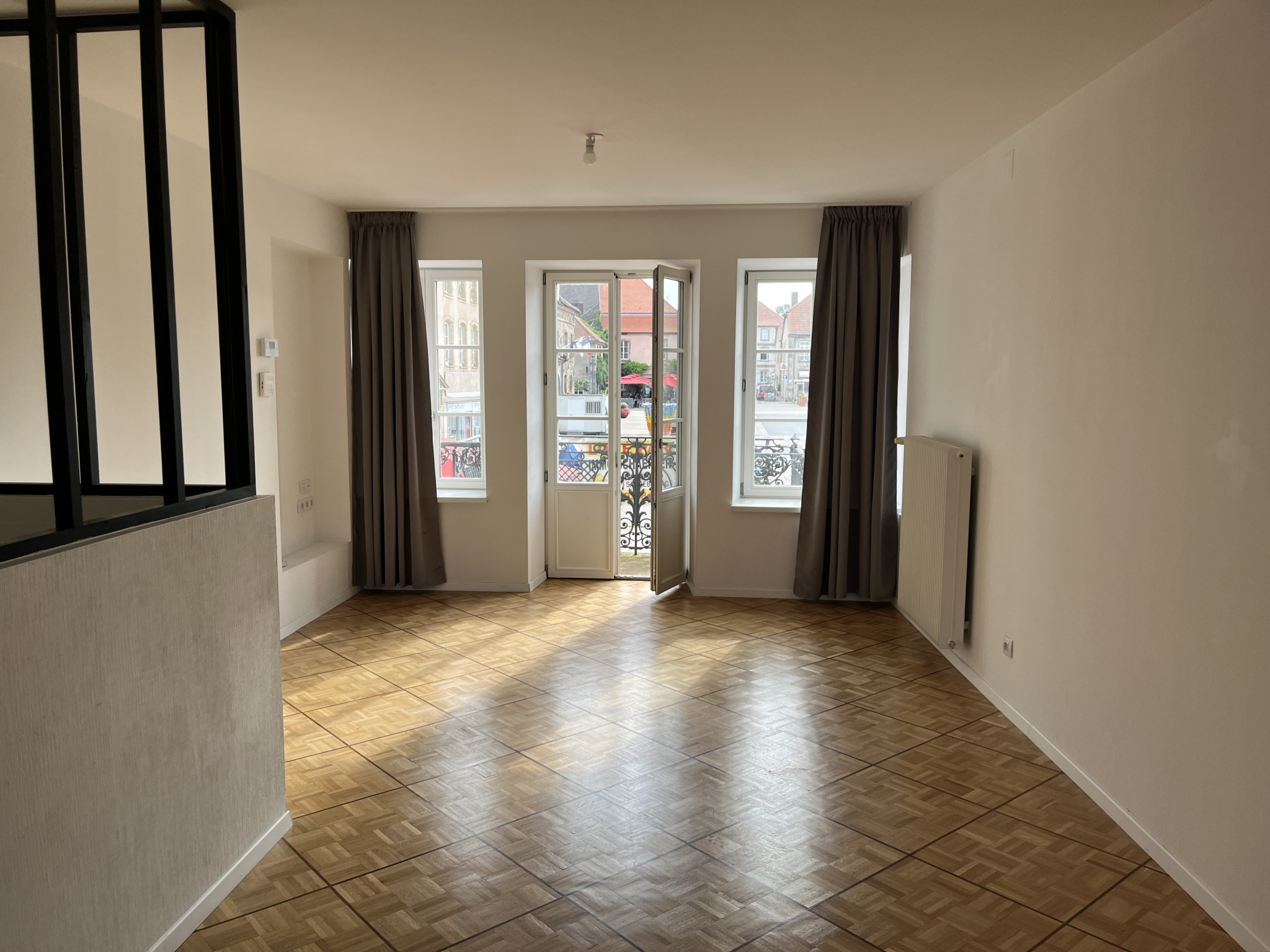 Phalsbourg, centre-ville : APPARTEMENT en triplex entièrement refait à neuf comprenant : séjour, cuisine équipée avec balcon, cellier. A l'étage : 2 chambres, SDB (baignoire et douche), WC. 3ème étage : 1 chambre. Chauffage individuel gaz. Disponible rapi...