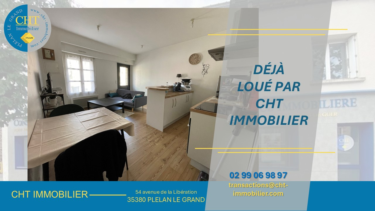 A LOUER A PLELAN LE GRAND un appartement type 2 entièrement rénové, composé d'une pièce de vie avec coin cuisine aménagée et équipée, une chambre, une salle d'eau avec WC.