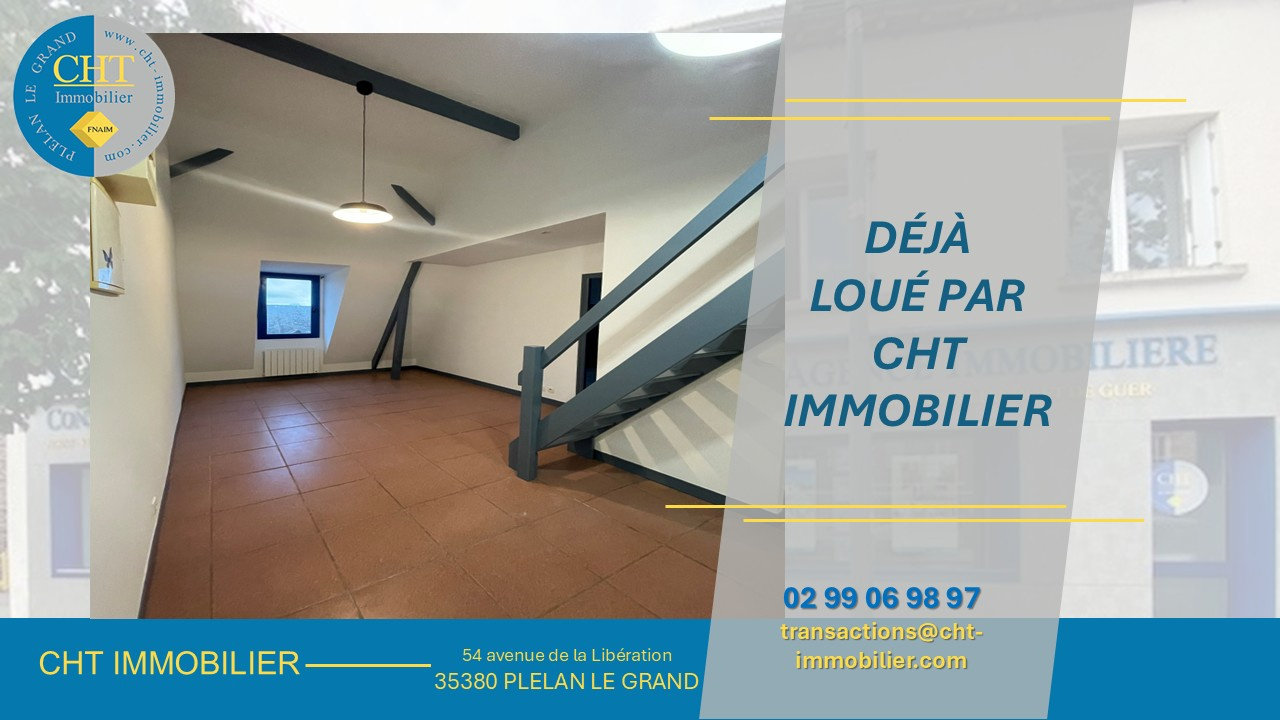 A PLELAN LE GRAND A LOUER un appartement T3 situé au deuxième et dernier étage d'un immeuble d'habitation, composé d'une entrée, d'une pièce de vie avec coin cuisine, une mezzanine, une chambre, un dégagement desservant un bureau, salle de ...