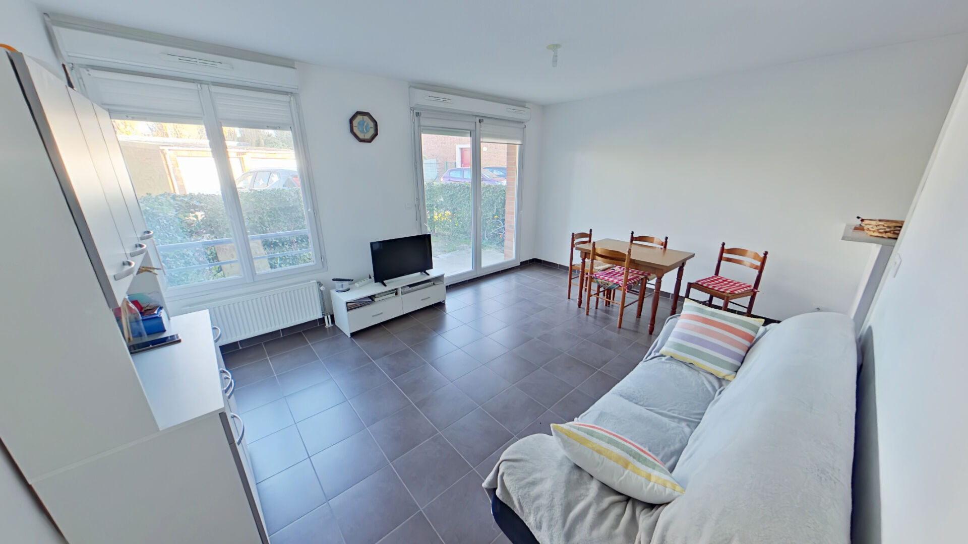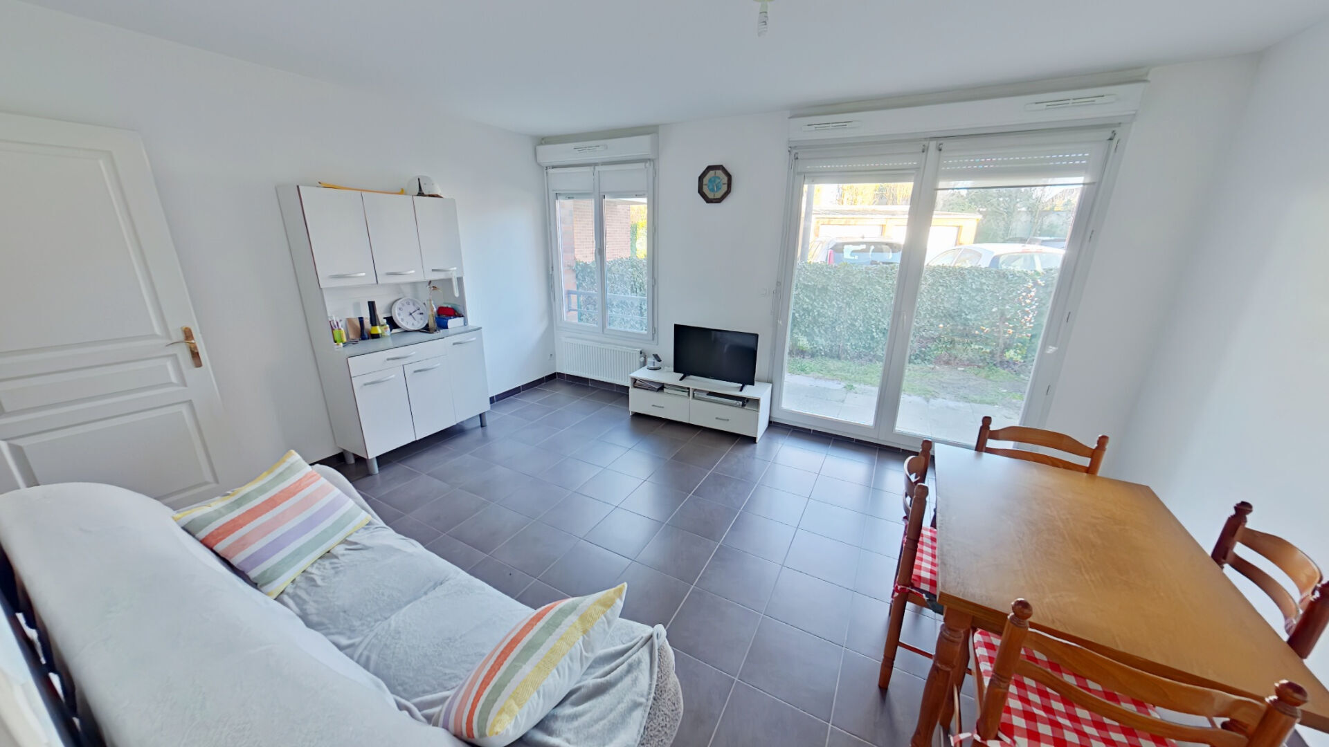 Annonce 4037 : Contacter IMMO de France: Marie PLATTEEURO au O6.73.74.42.57 A louer, Appartement type 2 en Rez de jardin de 43 m² au coeur d'une résidence récente, calme et entretenue rue Rolande Pastant à Pont à Marcqil est composé d'un hall...