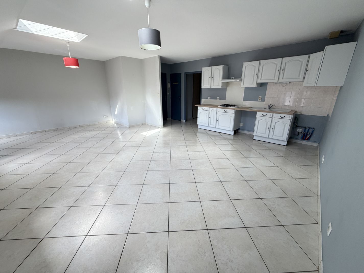 Fiche Id-26734g : A louer sur la commune de Pont-de-Vaux, appartement au 3eme étage sans ascenseur, comprenant une cuisine ouverte sur le séjour, un couloir desservant un cellier, un salon ainsi que 2 chambres, une salle de bain et un wc séparé. - Mentions lég...