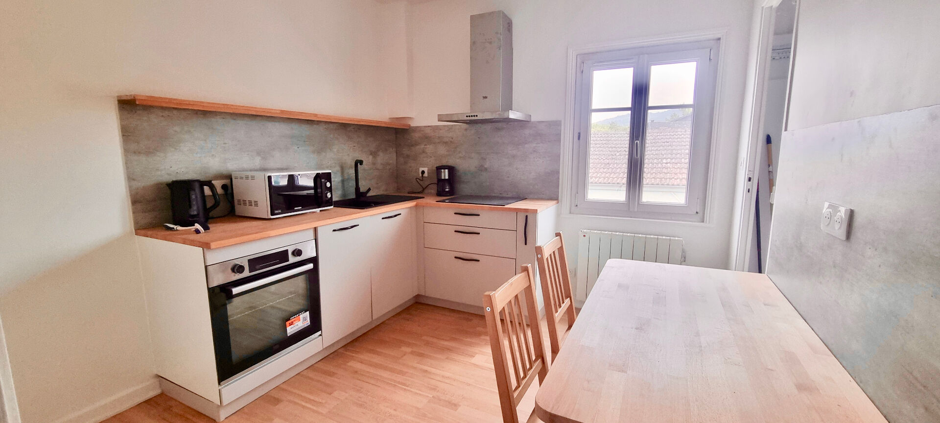 PONT DU CHATEAU bel appartement T2 meublé lumineux et décoré avec goût ! Composé d'une cuisine américaine entièrement équipée et aménagée ouvert sur séjour, une chambre, salle d'eau et WC. Chauffage individuel au gaz.