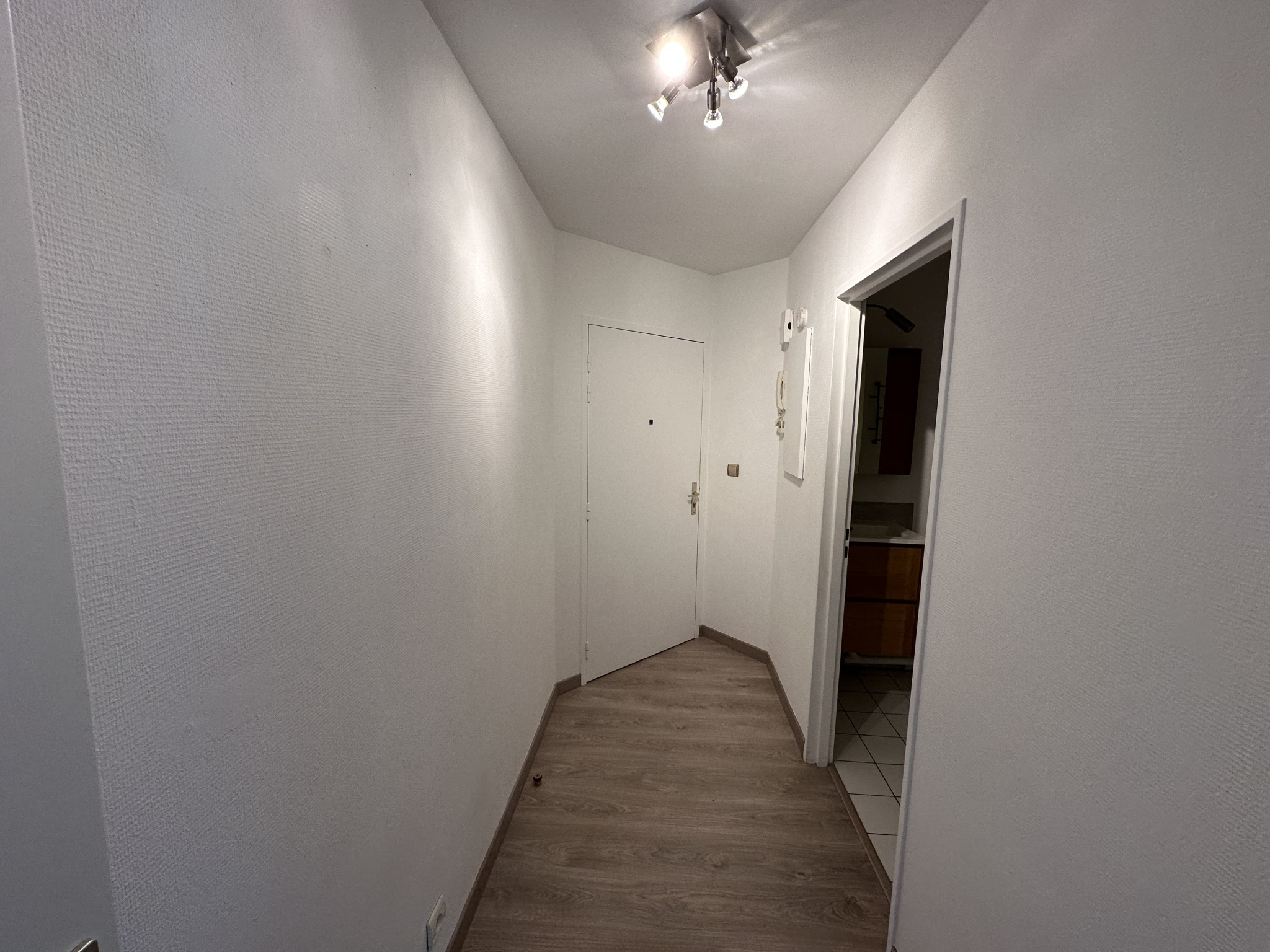 Appartement f2 de 56.76m2 au calme sans vis à vis et avec vue sur jardin : entrée, séjour 23 m2, cuisine indépendante, 1 chambre, salle de bains, wc séparés et débarras. Chauffage gaz. Balcon Parking. Libre le 15 aout 2025