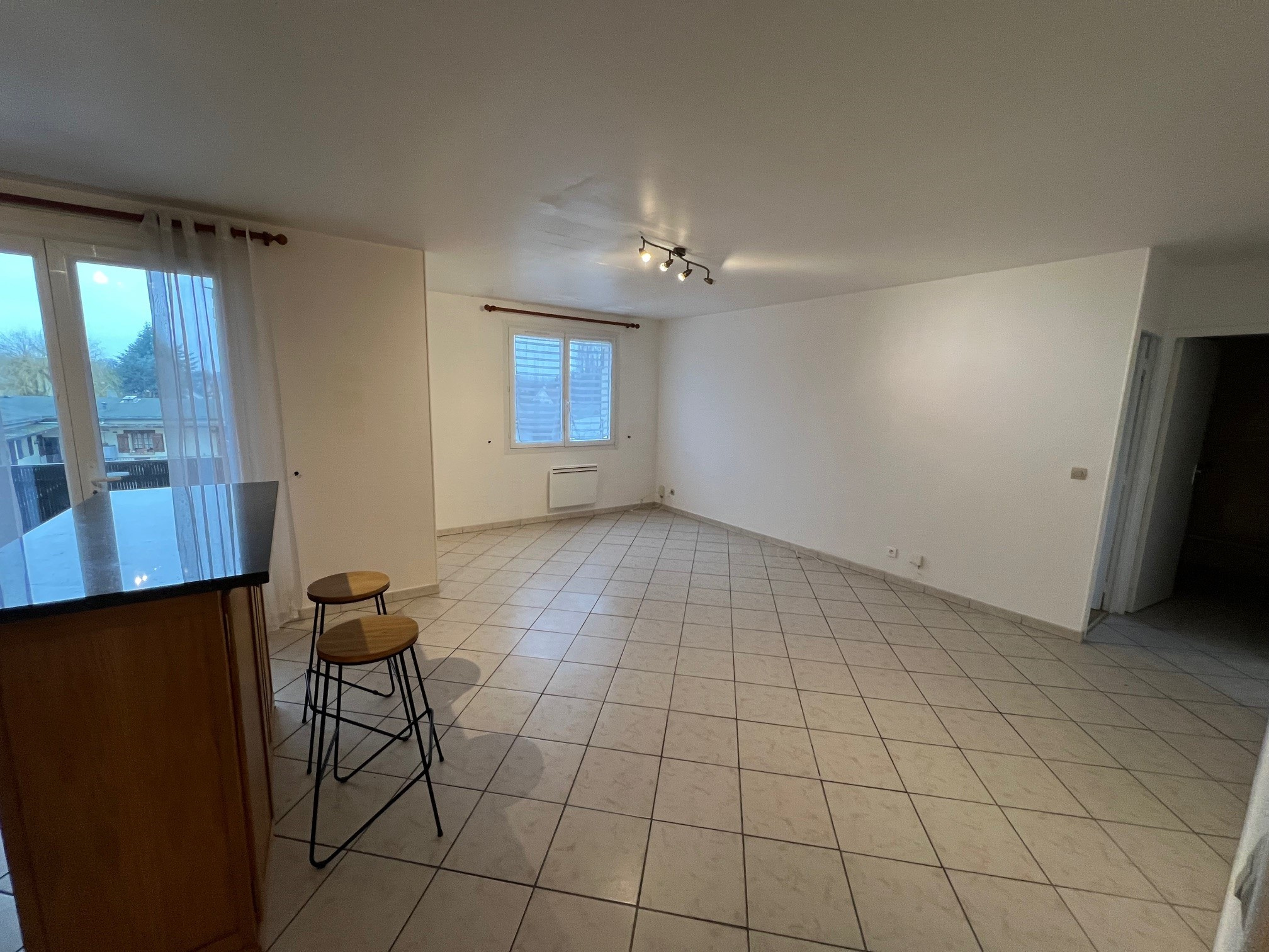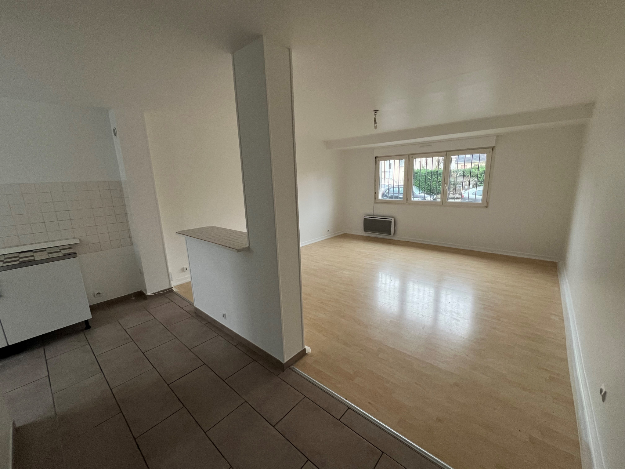 SPACIEUX F2 de 55.04m2 Entrée, Grand séjour avec balcon, Cuisine équipée ouverte, chambre avec placard aménagé, salle d'eau, wc. Parking. Libre