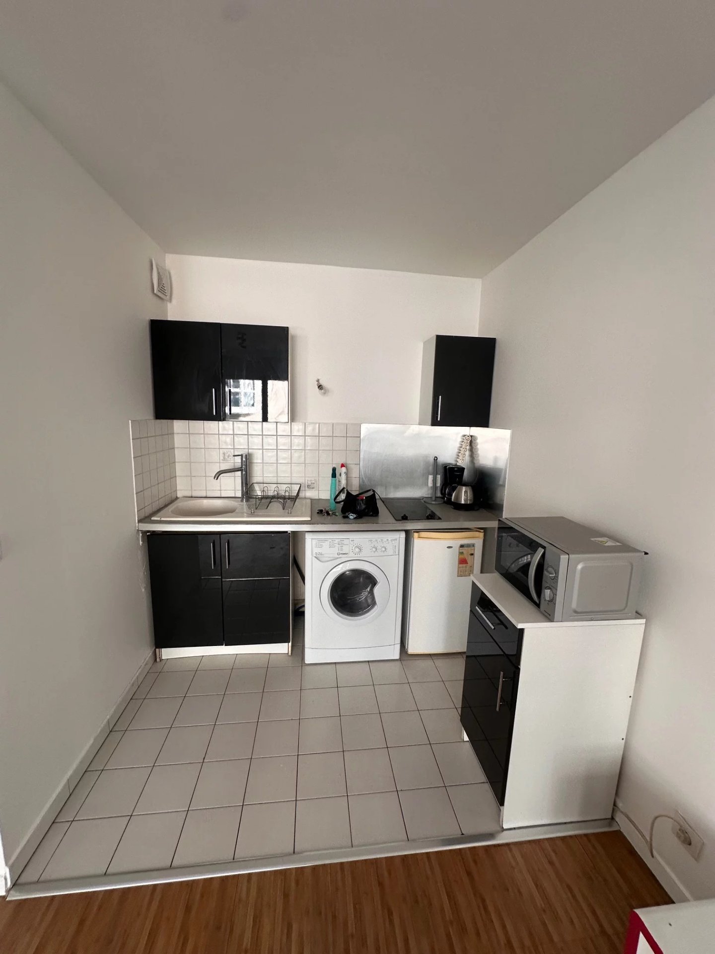 Proche gare appartement de deux pièces meublé comprenant une entrée avec placard, une chambre, une salle de bains avec wc, un séjour et une cuisine aménagée et équipée.