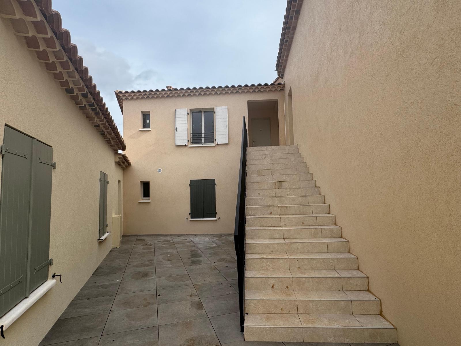 Pourrières - Appartement de type 3 neuf en rdc avec parking - L'Agence rex vous propose à la location un appartement T3 de 51 m² en rez-de-chaussée avec jardin composé d'une pièce de vie, cuisine, deux chambres et une salle d'eau avec WC.