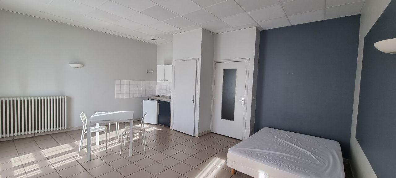 Studio EN PARTIE MEUBLE dans immeuble avec interphone et proche IFSI. Loyer de 285€ + 90 € de charges (comprenant le chauffage et l'eau froide). Idéal étudiant.