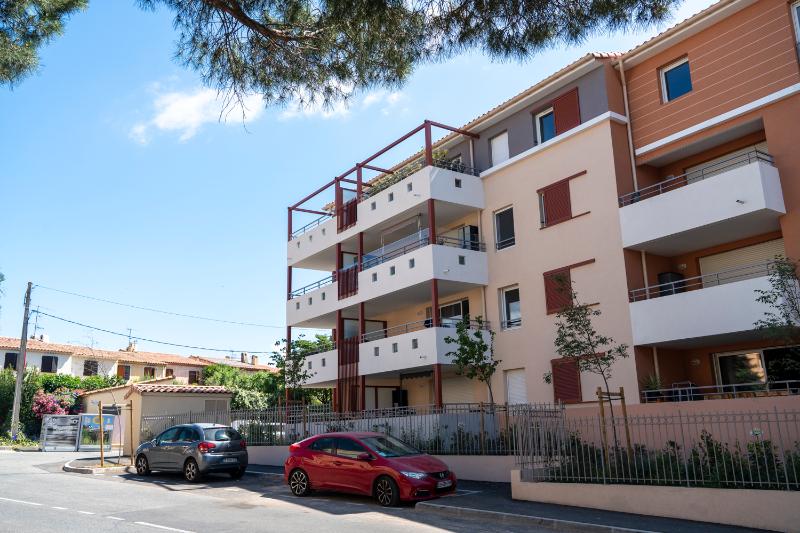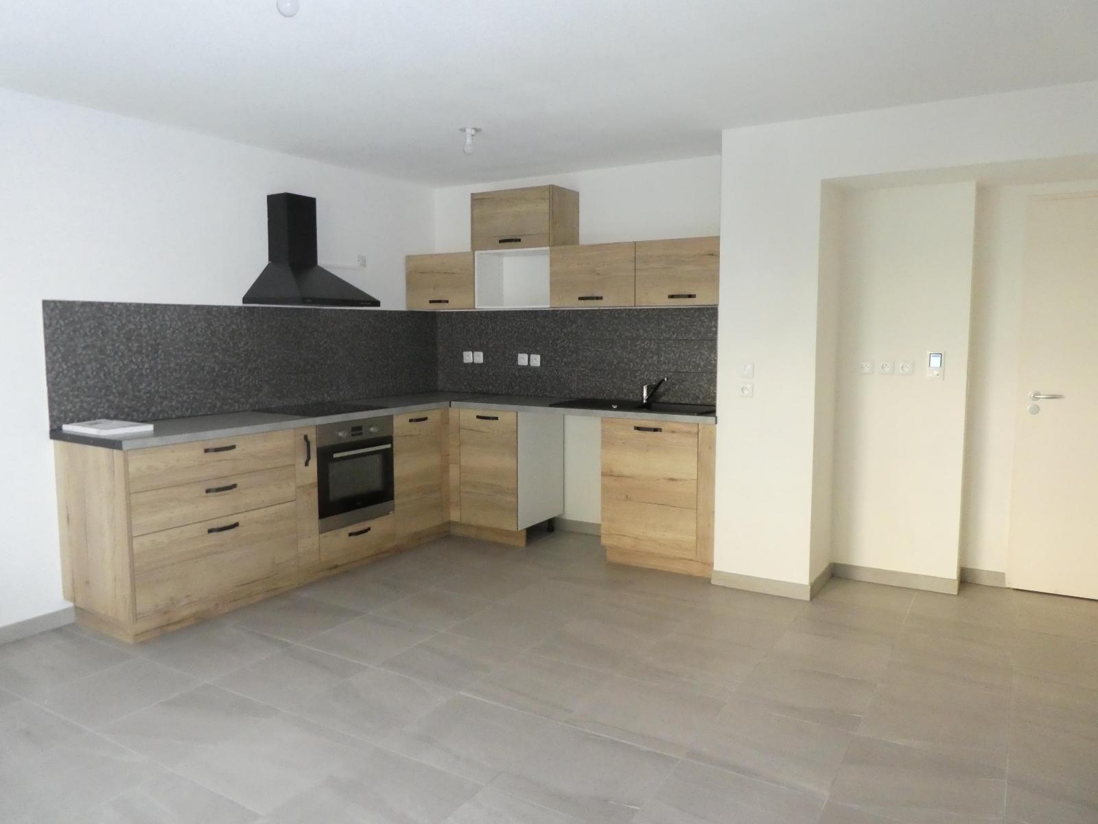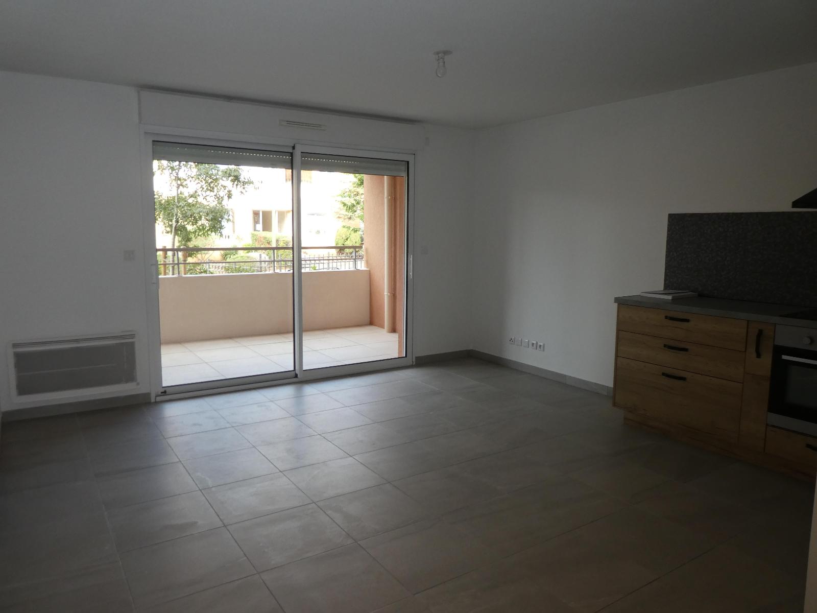 VAR - CENTRE VILLE - Puget sur Argens - résidence récente proche commerces et accès autoroute - Appartement 2 pièces en rez de chaussée de 46,25 m² comprenant : une entrée avec placard, un séjour avec cuisine ouverte aménagée et équipée (plaque de cuisson et h...