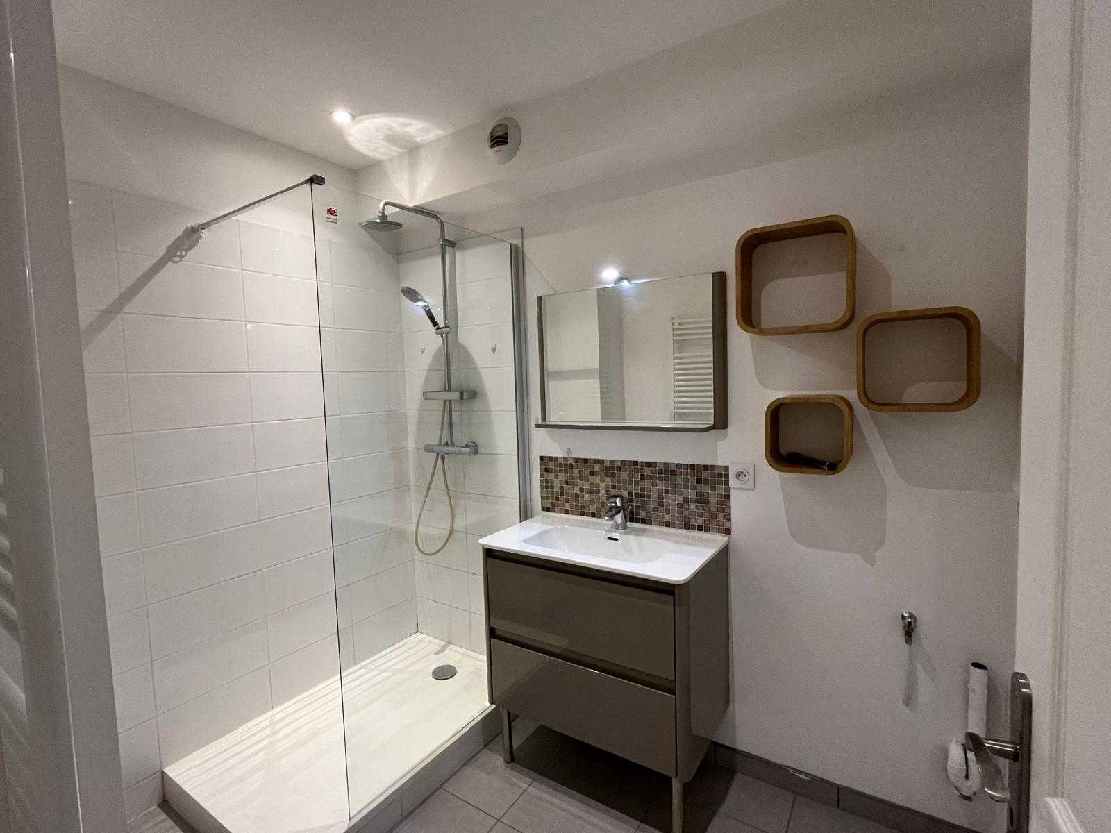 L'appartement se compose de la manière suivante : une entrée 2.87m2 qui dessert une pièce à vivre de 22,85 ...