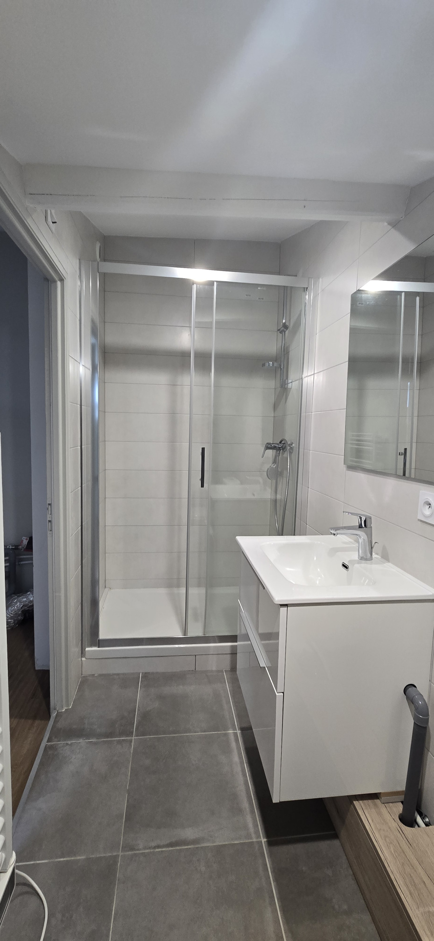 Logement calme composé : d'une pièce de vie avec coin cuisine meublée et équipée (frigo et de plaque de cuisson électrique) et d'une salle d'ea...