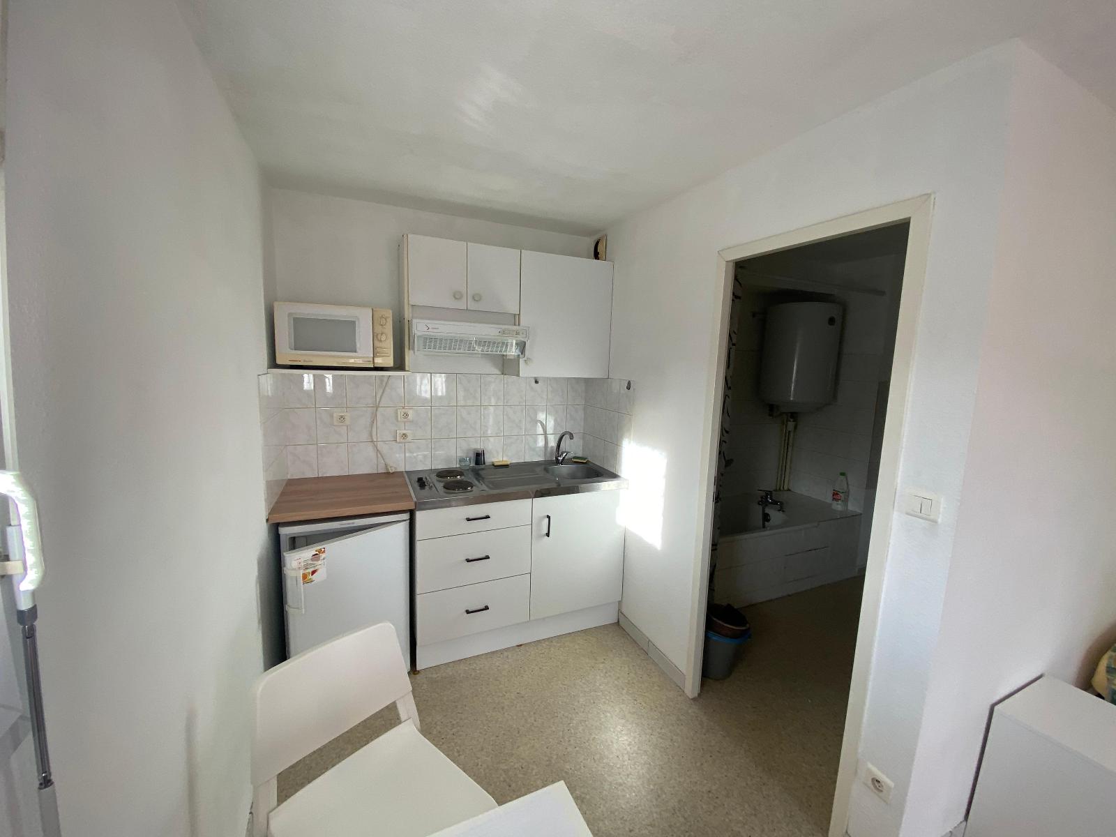 L'appartement se compose comme suit : entrée, séjour avec coin kitchenette, salle d'eau avec WC