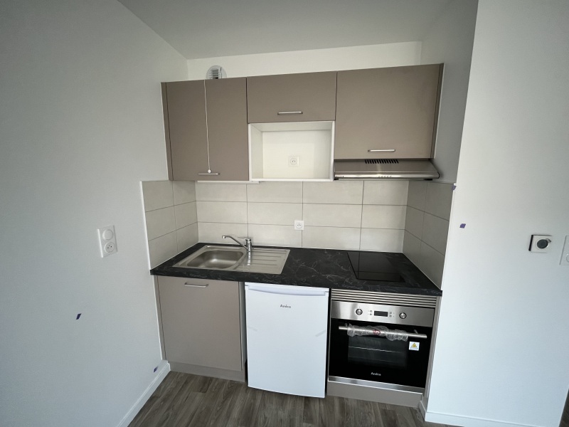 A SAISIR : Studio MEUBLE très fonctionnel et au calme situé au pied des commerces et face au Pôle Tertiaire, kitchenette équipée, parquet, parking, logement à consommation énergétique excessive : classe F, 330?HC.