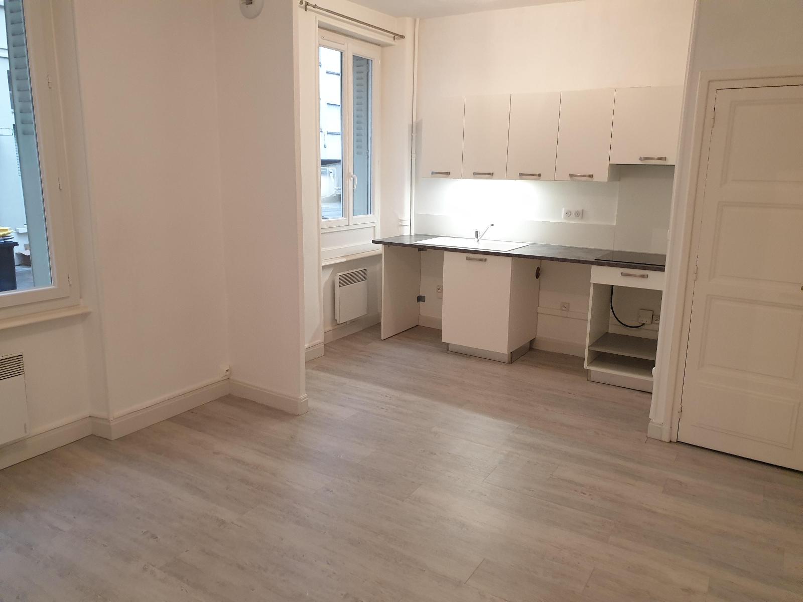 F2 en centre ville, bon état, 35m². 3ième étage. Cuisine équipée, séjour, chambre, salle d'eau/wc. Chauffage individuel électrique.