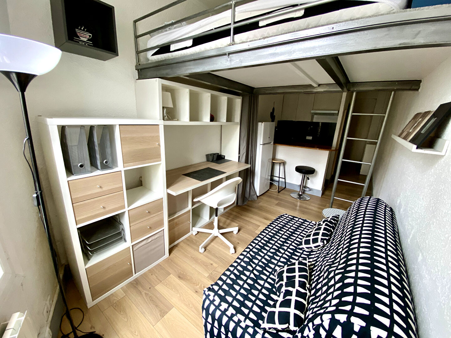 En plein centre bourg de Beaumont, retrouvez ce charmant studio meublé de 18m2 refait à neuf et trés bien agencé avec une optimisation de toute la surface habitable.