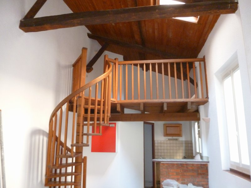 Au calme, en rez de chaussée, au sein d'une charmante cour intérieure, atypique F2 de 31 m2, comportant kitchenette (frigo, plaques) ouverte sur séjour, coin nuit en mezzanine et salle d'eau.