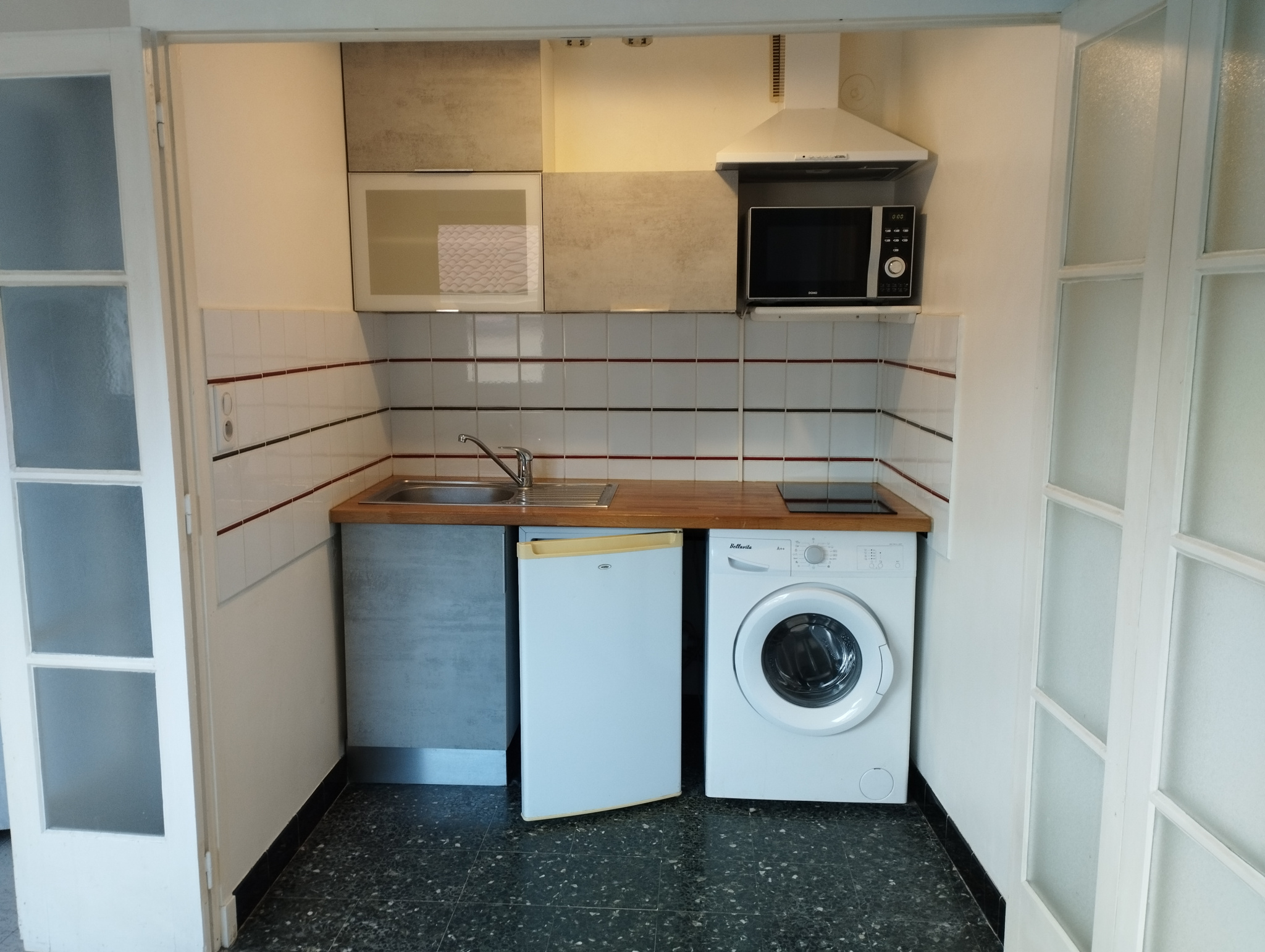 Cet appartement est composé comme suit : une chambre, une cuisine équipée et une salle d'eau.