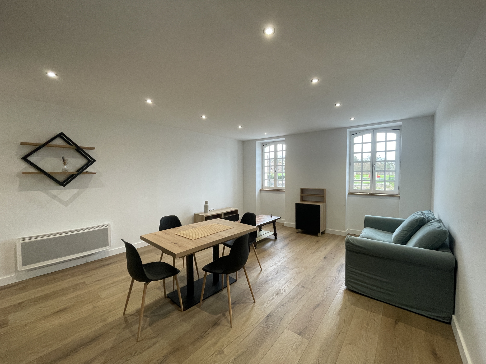 À louer, disponible dès maintenant, très beau T2 duplex meublé, entièrement rénové à neuf, situé au 2e étage d'un immeuble calme, en plein centre-ville de Nay.