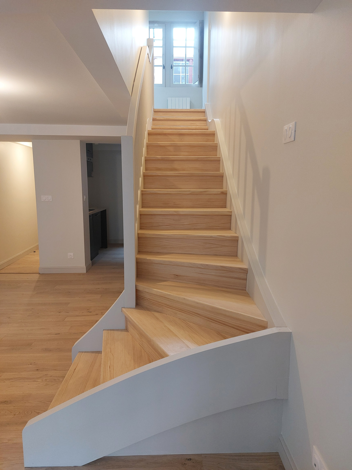 il se compose d'une entrée, une cuisine us semi-équipée, un séjour, une chambre et une salle d'eau, à l'étage une chambre