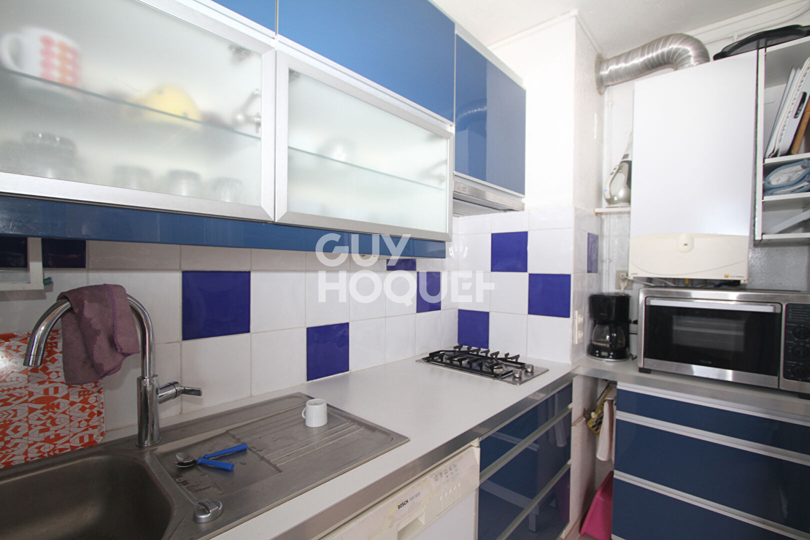 Grand séjour coin cuisine équipé cuisson vitrocéramique. Terrasse 12 m² Nord-Ouest. 2 chambres Nord Est. Salle d'eau. WC.
