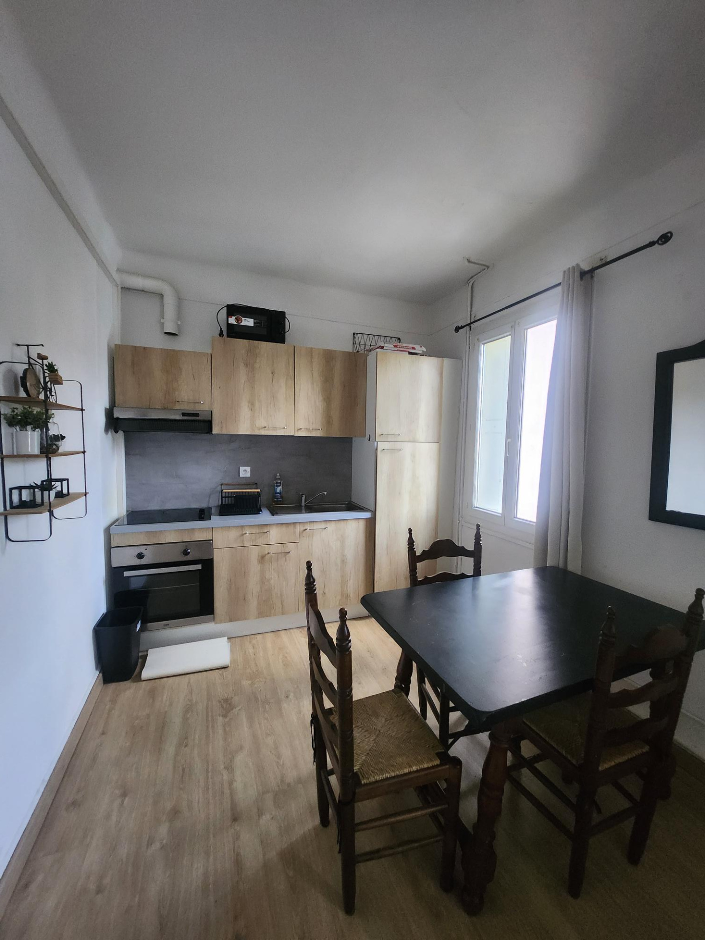 PERPIGNAN MOYEN VERNET - Au 1er et dernier étage d'une maison de ville, à quelques minutes à pied du centre ville, grand appartement F2 composé d'une entrée directe dans grand séjour avec coin cuisine aménagée et équipée, chambre, salle de bains.