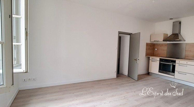 Situé au 1er étage d'un immeuble situé en centre-ville de Rabastens. Une cuisine avec placards, hotte, four et plaque de cuisson attenante à une pièce vie lumineuse, une salle d'eau avec simple vasque et meuble , WC séparé et 1 chambre.